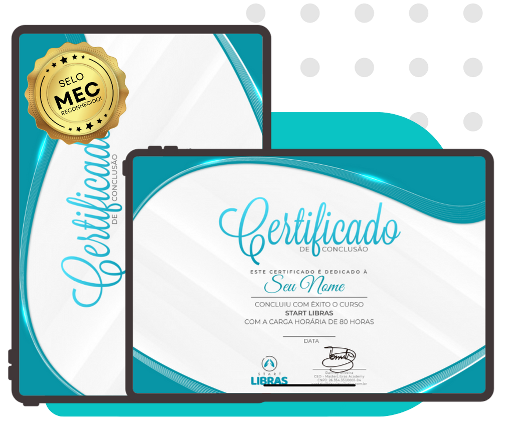 Fazendo parte do Start Libras você recebe totalmente grátis o Novo Certificado Reconhecido pelo MEC.